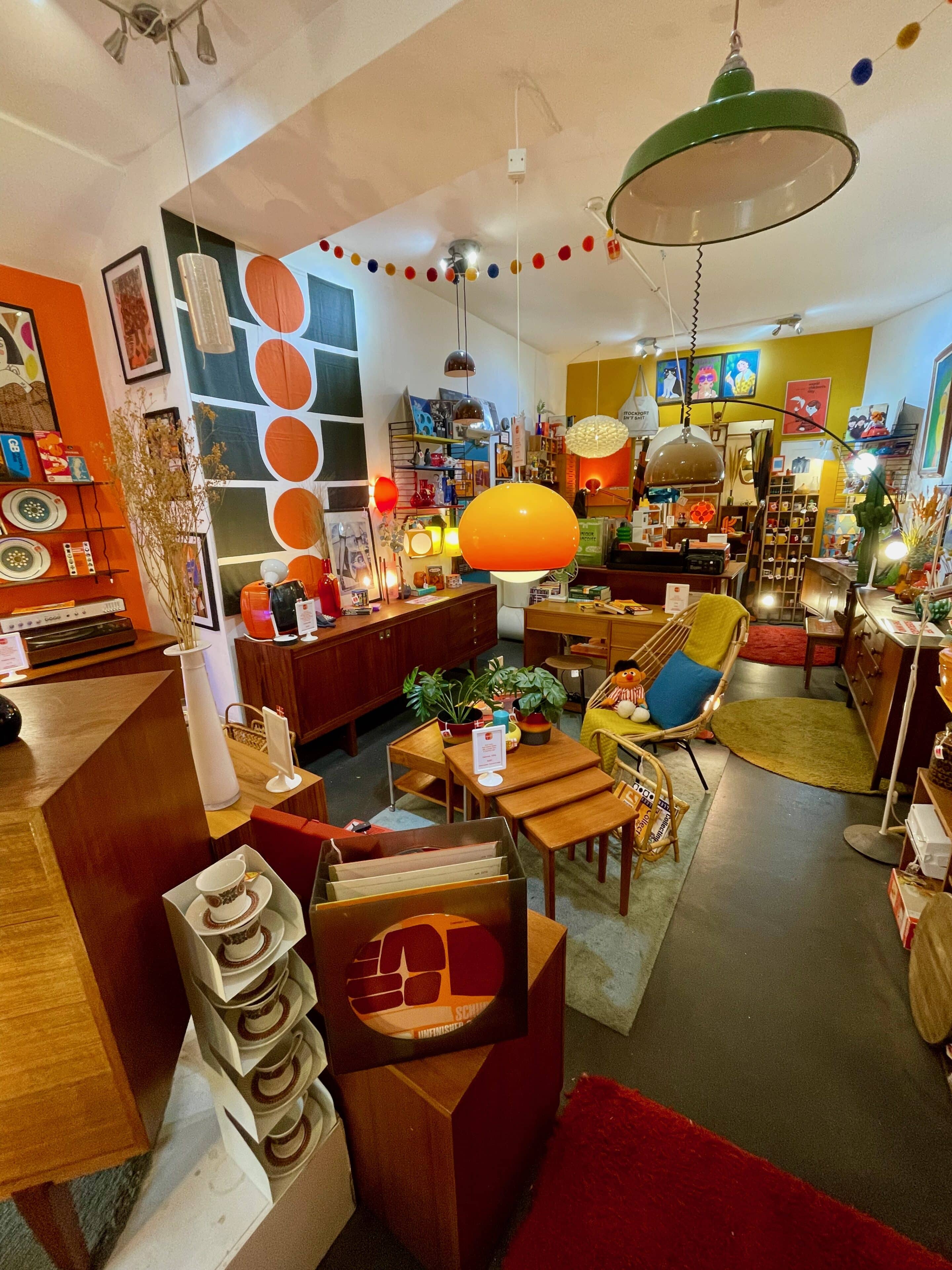The chain stores soon give way to the star of the show: The winding streets of the Underbanks and a sequence of independent shops, cafés and bars. Each façade bursts with colour and a proudly-original identity. Accompanied by alarmingly low-flying planes in Manchester Airport’s flightpath, you will find yourself pleasantly bamboozled. There are several fantastic vintage shops, hawking forgotten items from your childhood and unusual homeware from the four corners of the globe, and the prices aren’t crazy. As you feast your eyes on the kaleidoscope of offerings, the rear recesses of your brain will be redesigning parts of your home. We particularly loved Squound! The flashes of street art round here also add to the character of this lesser-known enclave of Stockport.